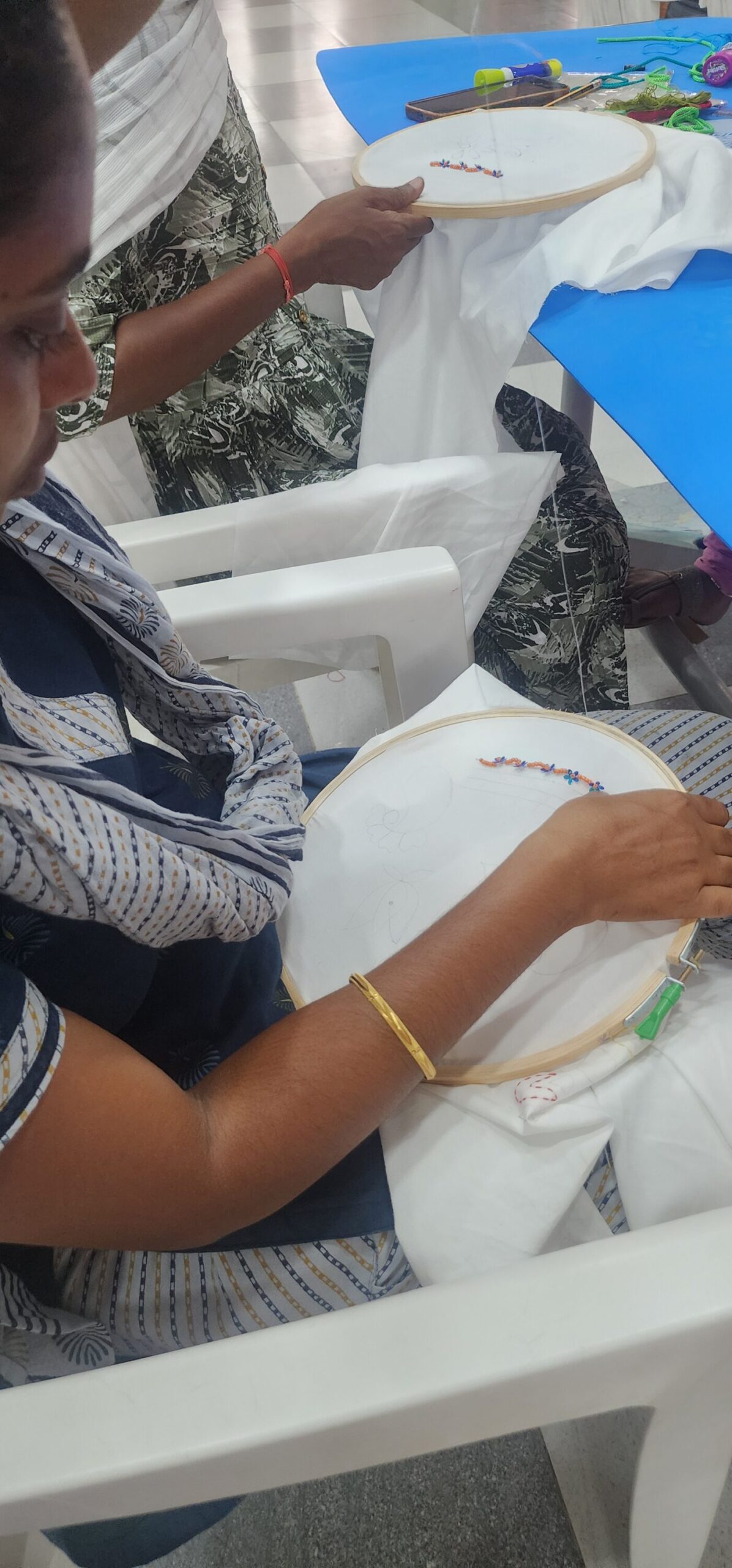 We run embroidery, eco-dye, block printing, and up cycling workshops for students, artisans, and homemakers across the UAE & India to build second incomes.